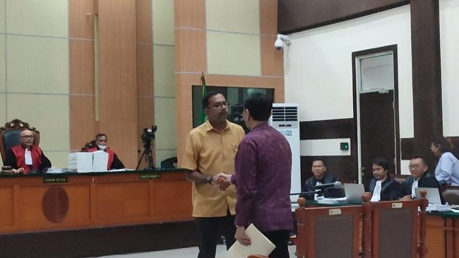 Hal itu terjadi di ruang sidang PN Jaktim, Kamis (8/6/2023). Mulanya, hakim ketua bertanya apakah Haris Azhar akan menyalami Luhut di ruang sidang.
