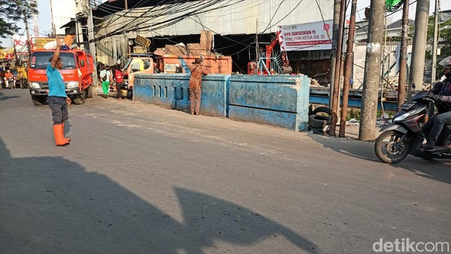 Sejumlah petugas Satpol PP juga berada di lokasi untuk mengatur keluar masuknya truk pengangkut sampah. Mereka juga mengatur lalu lintas agar tak terjadi kemacetan.
