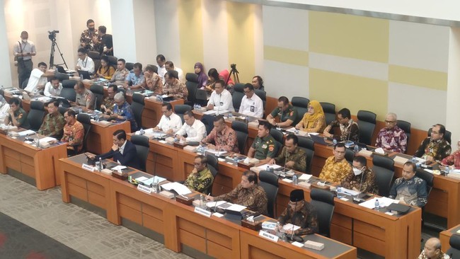 Empat menteri koordinator dalam kabinet Indonesia Maju menghadiri rapat di Badan Anggaran DPR. Rapat dipimpin Ketua Banggar DPR, Said Abdullah.
