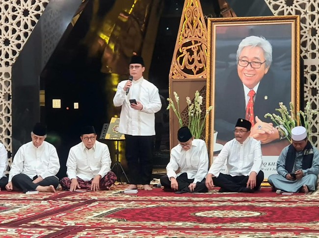 Baitul Muslimin Indonesia (Bamusi) menggelar pembacaan surat Yasin, tahlil, dan dzikir dalam peringatan Haul ke-10 wafatnya bapak bangsa Dr (HC) H.M. Taufiq Kiemas di Masjid At-Taufiq, Lenteng Agung, Jakarta Selatan, Kamis (8/6). Acara peringatan Haul ke-10 wafatnya Taufiq Kiemas ini juga dirangkai dengan 7 Hari Wafatnya Bambang Sukmono Hadi (Mertua dari Puan Maharani, red).