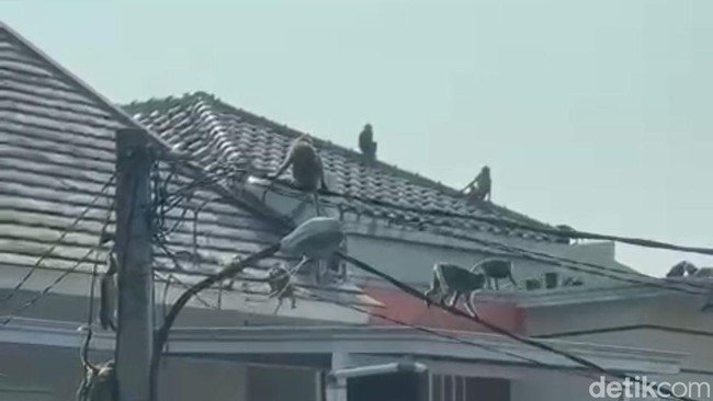 Sebuah video viral di media sosial puluhan monyet 'menyerbu' rumah warga di Perumahan The Cozy Green, Cimanggis, Depok. Kemunculan monyet-monyet itu membuat warga panik.