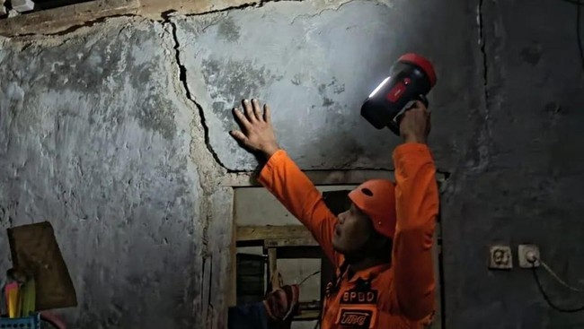 Diketahui, rumah warga di Megamendung rusak imbas gempa Cianjur tersebut. Kerusakan ada pada sejumlah bagian dinding rumah.