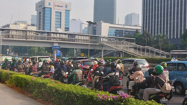 Pantauan detikcom, Senin (12/6/2023), pukul 08.40 WIB, kemacetan terlihat terjadi dari arah Pancoran menuju Semanggi. Kendaraan tampak hanya bisa melaju perlahan.