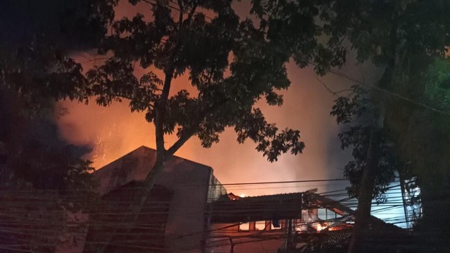 Diskar PB Kota Bandung menerima laporan kebakaran pukul 04.33 WIB dan tiba di TKP pukul 04.40 WIB, Selasa (13/6/2023). Sebanyak 10 mobil pemadam kebakaran diterjunkan untuk menjinakkan api, sekitar pukul 06.30 WIB api dinyatakan padam.