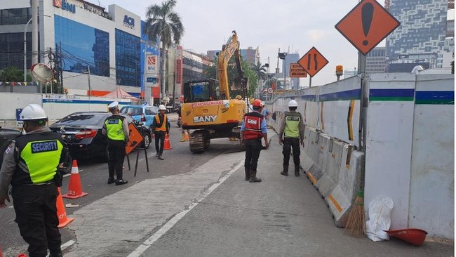 "Ada pekerjaan perbaikan jalan amblas di depan Duta Merlin Harmoni Jl Gajah Mada arah Glodok, untuk sementara hanya bisa dilewati satu jalur di sekitar lokasi," kata petugas call center NTMC Polri, Ine, saat dihubungi, Rabu (14/6/2023).