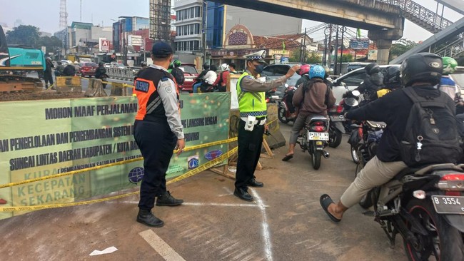 TMC Polda Metro Jaya menginformasikan pekerjaan proyek galian itu dilakukan di seberang Kali Ciliwung, tepatnya di Jalan KH Abdullah Syafei. Kepadatan itu terpantau pada pukul 07.15 WIB, Rabu (14/6/2023).
