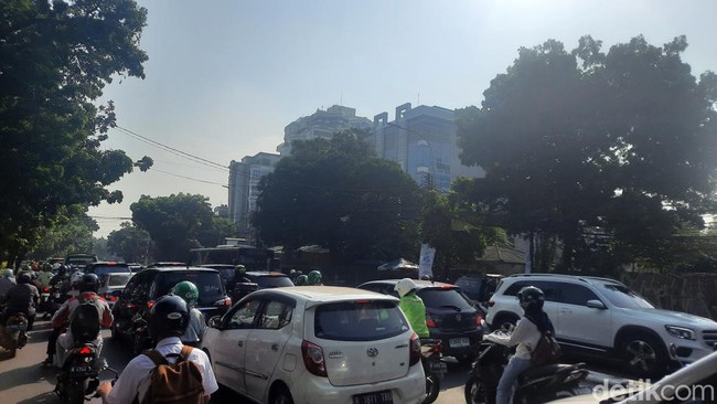 Pantauan detikcom di lokasi, pukul 09.20 WIB, Kamis (8/6/2023), kemacetan terjadi di ruas jalan ke arah perempatan simpang Pancoran. Sedangkan kondisi lalin di arah sebaliknya terpantau ramai lancar.