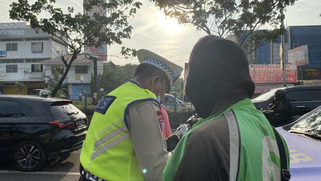 Dinas Perhubungan (Dishub) Kota Depok dan Lantas Polres Metro Depok melakukan operasi gabungan penertiban parkir liar di trotoar sepanjang Jalan Margonda, Depok. Polisi pun menilang ojek online (ojol) karena parkir di bahu jalan.