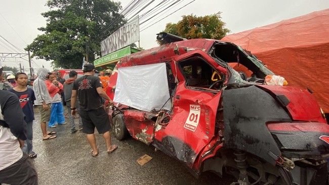 "Sopir sempat turun, posisi kereta udah dekat. Dia (sopir) langsung turun. Ada keseret. Tengah, langsung kehajar bagian tengah," ujarnya.