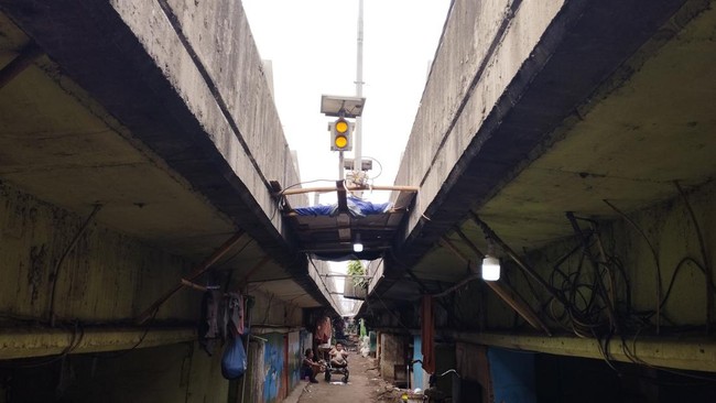 Siapa sangka ada kehidupan 'tersembunyi' di bawah Jalan Tol Angke 2 Jelambar, Jakarta Barat. Terdapat banyak keluarga yang tinggal di kolong jembatan itu.