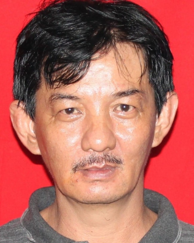 Foto yang diterima memperlihatkan Ali Opek sedang mengenakan baju kaus berkerah warna abu-abu dengan latar belakang foto warna merah.