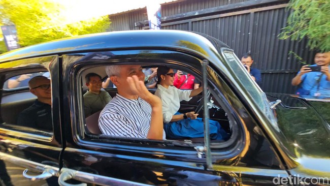 Bakal calon presiden (bacapres) dari PDI Perjuangan (PDIP) Ganjar Pranowo melakukan pertemuan dengan para generasi Z dan milenial di Kebon Vintage Cars Bali Classic, Denpasar. Di momen tersebut, Ganjar menaiki mobil bersejarah milik Ibu Fatmawati.
