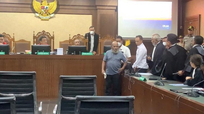 "Saudara terdakwa, mungkin ada keluarga terdakwa di sini. Maaf, ada keluarga atau istri dari terdakwa, tolong ya diberi pengertian," ucap hakim.