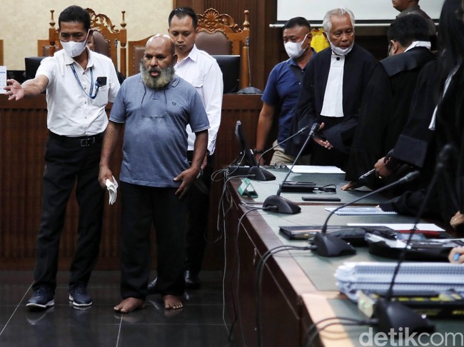 "Dengan rincian sebesar Rp 10.413.929.500 (Rp 10,4 miliar) dari Piton Enumbi selaku Direktur sekaligus pemilik PT Melonesia Mulia PT Lingge-lingge, PT Astrad Jaya serta PT Melonesia Cahaya Timur dan sebesar Rp 35.429.555.850 (Rp 35,4 miliar) dari Rijatono Lakka selaku Direktur PT Tabi Anugerah Pharmindo, Direktur PT Tabi Bangun Papua sekaligus pemilik CV Walibu," kata jaksa.