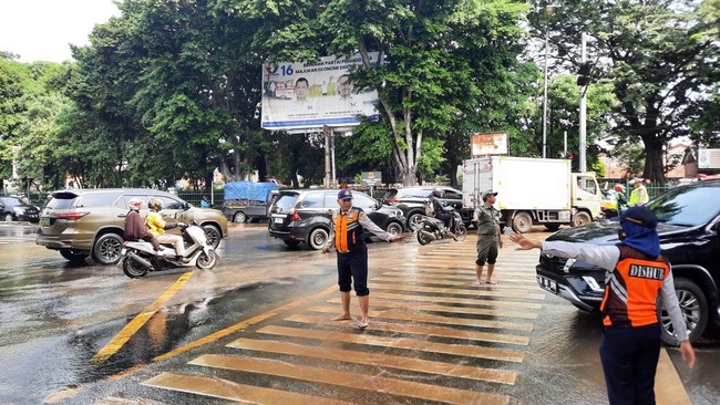 Dia mengatakan Satpol PP, Polantas, serta petugas Dishub membantu pemotor yang terjatuh. Dia juga menyebut ada mobil yang digunakan untuk menghambat arus deras air demi mencegah pemotor jatuh.