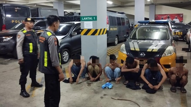 Ketika didekati, sebagian orang tersebut kabur. Namun tim patroli berhasil mengamankan 6 orang beserta senjata tajam celurit milik JEP (20).