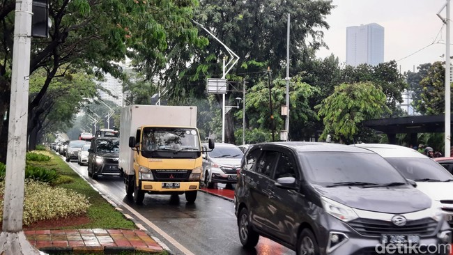 Adapun arah sebaliknya, yakni Jl Gerbang Pemuda arah Semanggi, terpantau sama-sama padat juga. Banyak kendaraan berhenti di tepi jalan mencari teduhan. Terlihat pula sejumlah pedagang.