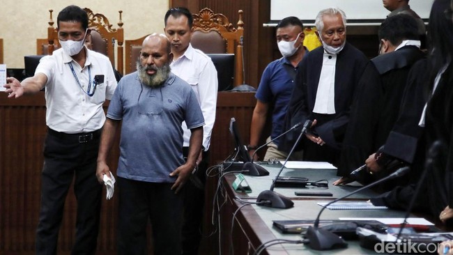 Hakim mengatakan Lukas dapat mengikuti persidangan berdasarkan surat keterangan dokter. Majelis hakim pun tetap melanjutkan persidangan.