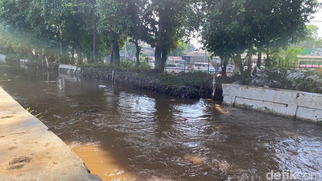 Pantauan detikcom, Selasa (20/6/2023), tidak terlihat bronjong atau keranjang dari kawat untuk membungkus batu kali. Bronjong biasanya digunakan juga untuk meninggikan turap atau dinding beton sungai.