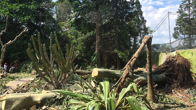 "Ada pohon koleksi (tanaman kaktus) yang terkena dampak. Saat ini masih berlangsung evakuasi terhadap pohon tumbang tersebut, sementara pengunjung tidak bisa melintas di area tersebut," ucap Zaenal.