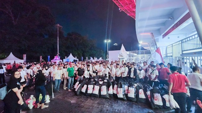 PT Pegadaian bersama Presidium Nasional Suporter Sepak Bola Indonesia (PN-SSI) membentuk 'Tim Bersih Indah' melakukan aksi nyata membersihkan sampah di Gelora Bung Karno dalam FIFA Matchday antara Timnas Indonesia vs Argentina. Aksi itu dilakukan sebelum, saat, dan setelah laga berlangsung.