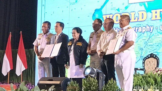 "Kami memberikan brevet kepada Ibu Mega karena memang cara pandang beliau dari dulu bervisi maritim," kata Komandan Pusat Hidro-Oseanografi TNI Angkatan Laut (Danpushidrosal) Laksamana Madya (Laksdya) TNI Nur Hidayat, Rabu (21/6/2023).