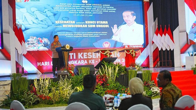 Kapolri Jenderal Listyo Sigit Prabowo menghadiri kegiatan Bakti Sosial Kesehatan di Jawa Timur (Jatim) hari ini. Kegiatan ini merupakan bagian dari rangkaian Hari Bhayangkara ke-77.