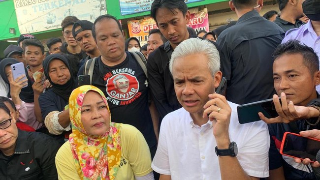 Mulanya Ganjar mengunjungi sejumlah kios di Pasar Warakas dan Pasar Anyar Bahari. Kemudian, Ganjar sarapan dan berbincang dengan para pedagang, di Pasar Anyar Bahari, Tanjung Priok, Jakarta Utara, Sabtu (24/6/2023).