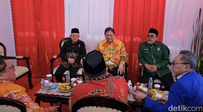 Dalam ruang tunggu VIP itu terlihat juga kehadiran Plt Ketum PPP Mardiono, Ketum Perindo Hary Tanoesoedibjo, Ketum Partai Golkar Airlangga Hartarto, Waketum PKB Jazilul Fawaid, Ketum PAN Zulkifli Hasan (Zulhas). Mereka tampak menunggu dimulainya acara sembari mengobrol bersama Megawati.