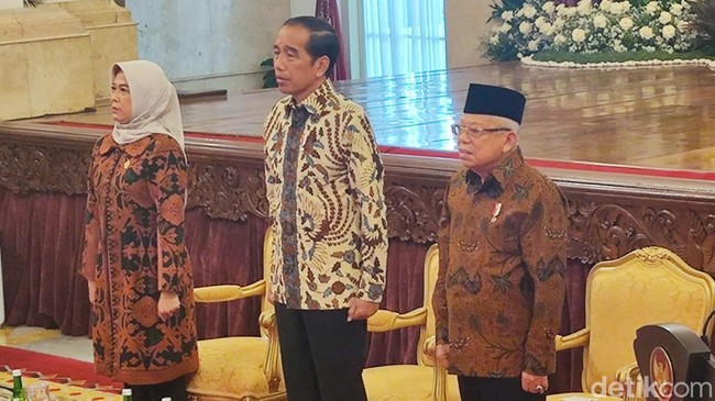 Kemudian, Menteri Pertahanan Prabowo Subianto, Mendagri Tito Karnavian, Menkeu Sri Mulyani, Panglima TNI Laksamana Yudo Margono, hingga Kapolri Jenderal Listyo Sigit Prabowo.