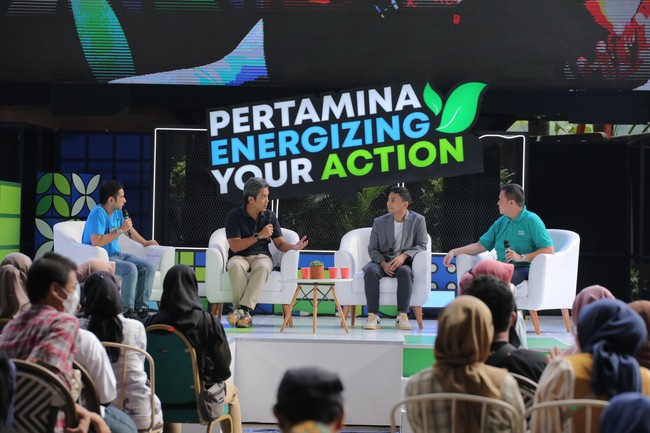 Sementara itu, di sesi talkshow kedua, Pertamina Energizing Your Action mengundang Direktur Keuangan Pertamina Emma Sri Martini, Pendiri Walahar Creative Enjang Ramdhani, serta Cinta Laura. Ketiga pembicara ini memberikan informasi dan pandangannya terkait topik 'Giving Back to the Community, Giving Back to the Environment'.