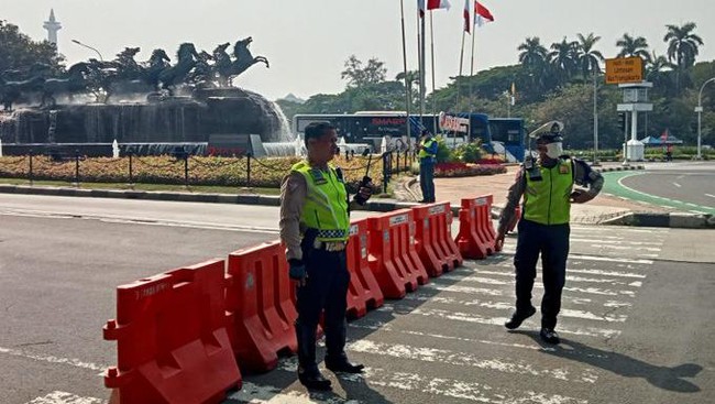 Dilihat dari akun Instagram TMC Polda Metro, lalin di Patung Kuda saat ini telah ditutup. Dari postingan akun TMC Polda Metro, terlihat massa berbaju putih-hitam tengah berunjuk rasa di lokasi.