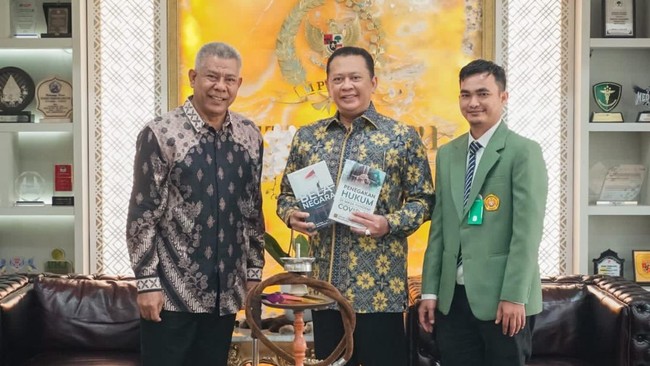 Ketua MPR RI sekaligus Ketua Dewan Pembina Alumni Doktor Ilmu Hukum UNPAD Bambang Soesatyo bertemu dengan Rektor UPN Veteran Jakarta Dr. Anter Venus bersama Wakil Dekan FH UPN Veteran Jakarta Taupiqqurrahman, di Jakarta, hari ini. Adapun pertemuan tersebut membahas persiapan The 5th National Conference on Law Studies (NCOLS) dengan tema 'Partisipasi Masyarakat Dalam Mewujudkan Negara Hukum Kesejahteraan (Welfare State) Indonesia'.