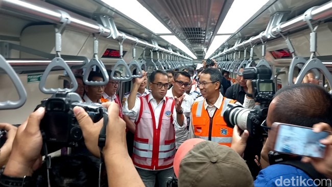 Menhub tampak mendengarkan paparan persiapan peluncuran pengoperasian LRT terlebih dulu. Setelah itu, dia bersama Heru Budi dan rombongan media turut menjajal LRT untuk menuju Depo LRT Jabodebek, di Bekasi, Jawa Barat.