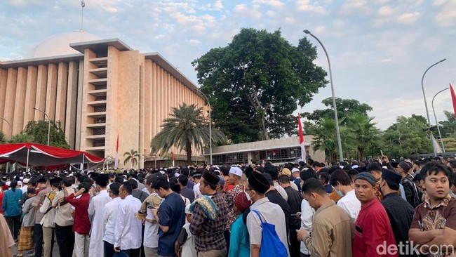 Pantauan detikcom di lokasi, Kamis (29/6/2023), pukul 06.27 WIB, warga mulai berdatangan untuk Salat Idul Adha di Masjid Istiqlal, Jakarta. Mereka tampak membawa perlengkapan salat dan datang bersama keluarga.