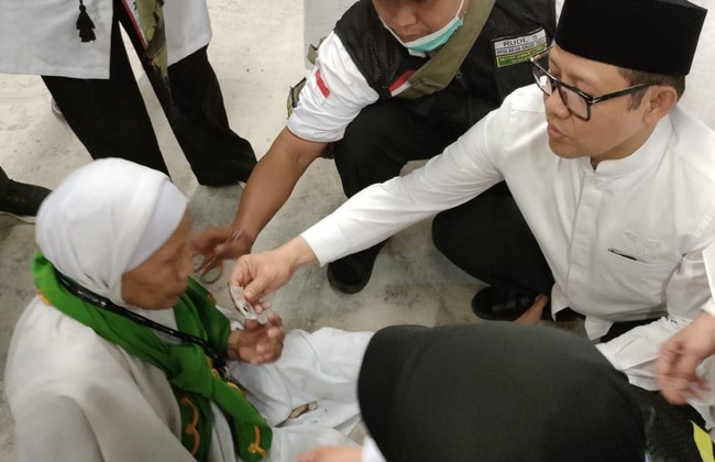 Melihat kondisi jemaah itu, Ketua Tim Pengawas Haji DPR RI Abdul Muhaimin Iskandar (Cak Imin) langsung menghampiri dan memberikan pertolongan pertama berupa air minum dan sepotong kue.