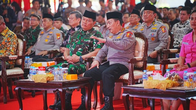 Polri menggelar agenda doa bersama lintas agama dalam rangka Hari Bhayangkara ke-77. Kapolri Jenderal Listyo Sigit Prabowo dan Panglima TNI Laksamana Yudo Margono hadir di lokasi.