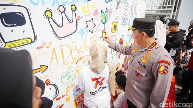 Dalam kesempatan itu, Kapolri menyempatkan diri bercengkerama dengan anak-anak dan ikut melukis pada 'Dinding Kreatif Polri 77'. Ya, dalam perayaan Hari Bhayangkara ke-77 ini, Polri melibatkan masyarakat secara aktif untuk bersama mengekspresikan kreativitas yang dapat dituangkan di 'Dinding Kreatif Polri 77'.