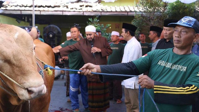 "Sapi kurban dari Pak Prabowo untuk Habib Syech tersebut didapat dari peternakan sapi milik Kapolsek Sambungmacan, Sragen. Masyarakat di sekitar kompleks Majelis Taklim Ahbaabul Musthofa Kartasura Sukoharjo ini dengan tertib menyaksikan proses penyembelihan hingga selesai," jelas Sriyanto.