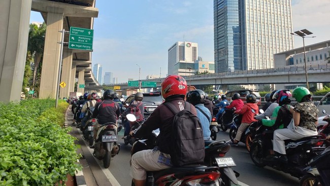 Cuti bersama dan libur Hari Raya Idul Adha 2023 telah usai. Kemacetan lalu lintas terjadi di Jalan Gatot Subroto, Jakarta Selatan arah Slipi, Senin (1/7/2023) pagi ini.