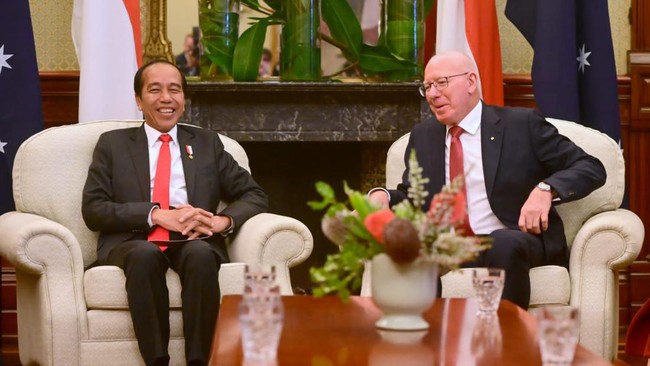 Presiden Joko Widodo (Jokowi) bertemu dengan Gubernur Jenderal Australia David Hurley di Admiralty House, Sydney. Pertemuan digelar setelah Jokowi bertemu dengan para pemimpin perusahaan Australia.