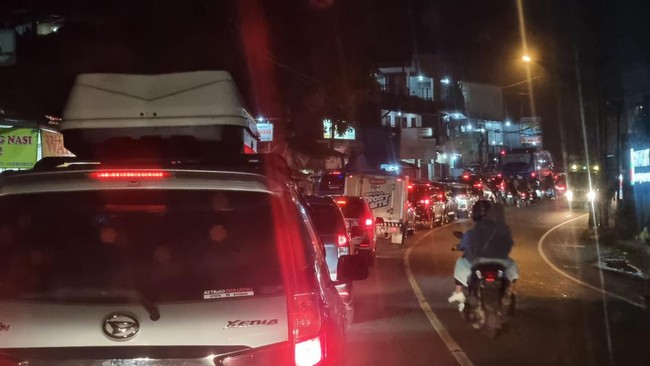 Sejumlah titik di kawasan Puncak, Kabupaten Bogor, Jawa Barat, terpantau macet malam ini. Polisi menjelaskan sejumlah titik di sepanjang Jalan Raya Puncak macet terjadi salah satunya karena ada bottleneck.