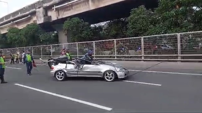 "Kendaraan terpental dan terbalik di lakur 1 dan 2, keempat ban di atas menghadap barat," tambahnya.