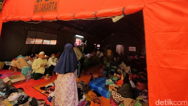 Pantauan detikcom di RPTRA kebon Sawo, Minggu (9/7/2023), terlihat korban beristirahat di tenda yang disediakan oleh BPBD DKI Jakarta. Anak-anak terlihat berkumpul dengan rekan sebayanya di samping tenda dekat tenda Baznas.