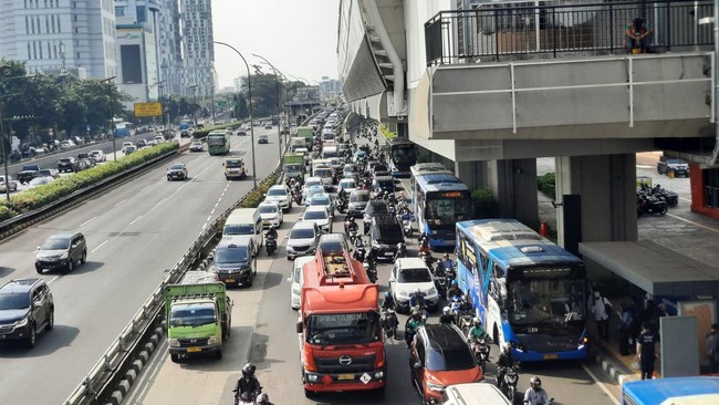 Pantauan detikcom di lokasi, pukul 09.40 WIB, Senin (10/7/2023), kemacetan terjadi dari Pancoran menuju Jalan Gatot Subroto arah Menteng dan Kuningan. Laju kendaraan hanya bisa berjalan dengan kecepatan kurang dari 20 kmh.