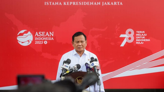 Prabowo tiba di Kompleks Istana Kepresidenan pada pukul 13.52 WIB, Senin (10/7/2023). Ada beberapa hal yang disampaikan Prabowo kepada Jokowi. Perkembangan industri pertahanan menjadi yang utama dalam laporan itu,