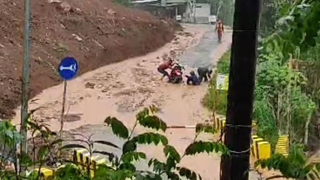 Terjadinya hujan lebat dengan tiba-tiba di musim kemarau itu, akhirnya membawa material lumpur dari atas bukit dan turun ke jalan. Beberapa warga nekat melewati jalan desa dengan menggunakan sepeda motor terpeleset lantaran jalan licin.