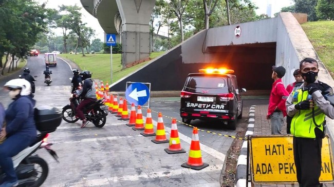 Dihubungi terpisah, call center NTMC Polri, Ayu, menyampaikan penutupan jalur lambat kolong Semanggi dilakukan sejak pagi tadi. Kendaraan yang akan melintas ke Blok M melalui jalur lambat, khususnya pemotor, diimbau untuk mengikuti arahan petugas di lapangan.