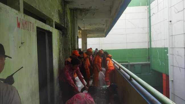 Petugas gabungan yang terdiri dari Polsek Tanah Abang, Babinsa TNI, perangkat kelurahan Kebon Kacang mulai membersihkan Gedung blok G pasar Tanah Abang. Kegiatan bersih-bersih dilakukan mulai dari lantai dasar.