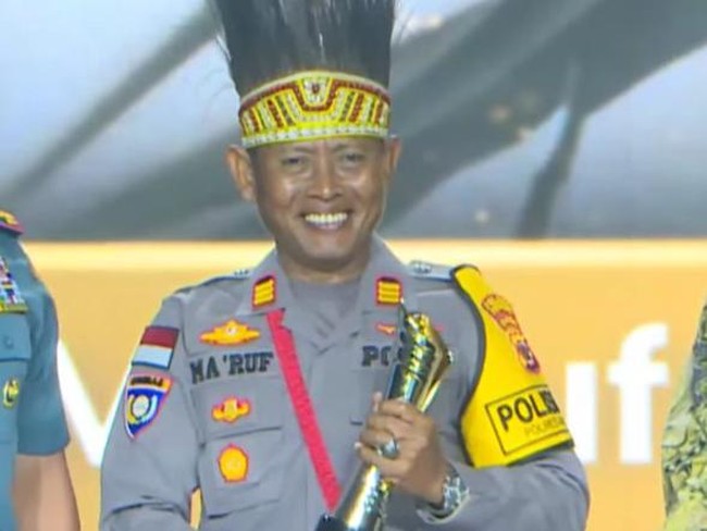 "Kami dari Marauke perbatasan Sota. Kami terpanggil dan kami ingin mengabdi di Papua. Terima kasih Papua," kata AKP Makruf dalam Penganugerahan Hoegeng Awards 2023 di The Tribrata Darmawangsa, Jakarta Selatan, Jumat (14/7/2023).